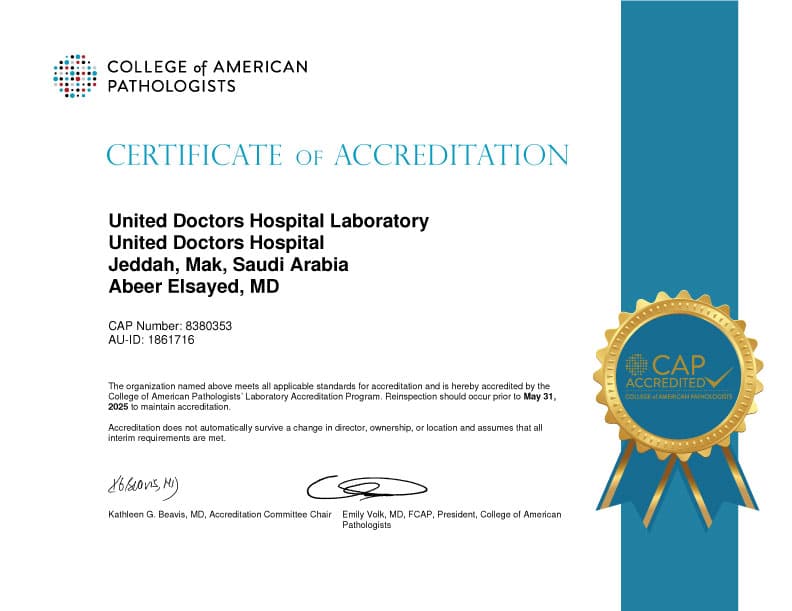 الرئيسية “الأطباء المتحدون” يجتاز معايير شهادة اعتماد كلية علماء الأمراض الأمريكية لـ ( CAP )
