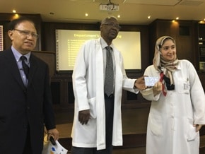 ثم قام كل من الدكتور سامي المرزوقي المدير الطبي والدكتور صلاح تيجاني رئيس قسم الباطنة والدكتور عصام عبده مدير تثقيف المرضى بتكريم الفائزين من المشاركين النشطين وكذلك الأقسام الفائزة في مسابقة أفضل رسوم معبرة عن مفهوم غسيل الأيدي