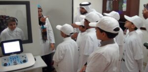 حيث استقبل المستشفى خلال العام عددا من الزيارات من المدارس وذلك ضمن برنامج الملتقى الثقافي لأمارة مكة ، كيف نكون قدوة؟ للتوعية حول أهمية العناية الصحية الذاتية ، وتم من خلال هذه الزيارات تقديم عدد من البرامج الداخلية للأطفال حول المفاهيم الصحيحة للعناية الصحية داخل المنزل وفي المدرسة وتنفيذ زيارات داخلية لعدد من العيادات وغرف العمليات لتقديم تصور مبدئي يساعد على فهم ومعرفة مدى ما يبذله المستشفى والأطباء من جهد لتقديم خدمات الرعاية الصحية بالإضافة لمشاهدتهم للعديد من الأجهزة الطبية الحديثة وكيف تستخدم في اكتشاف الأمراض ، كذلك تنفيذ أنشطة ترفيهية مبسطة داخل عيادة الأسنان لتوثيق علاقة الطفل بالطبيب وتحويلها إلى مكان لإزالة الألم وكسر حاجز الرهبة والخوف لدى الأطفال من زيارة الطبيب.